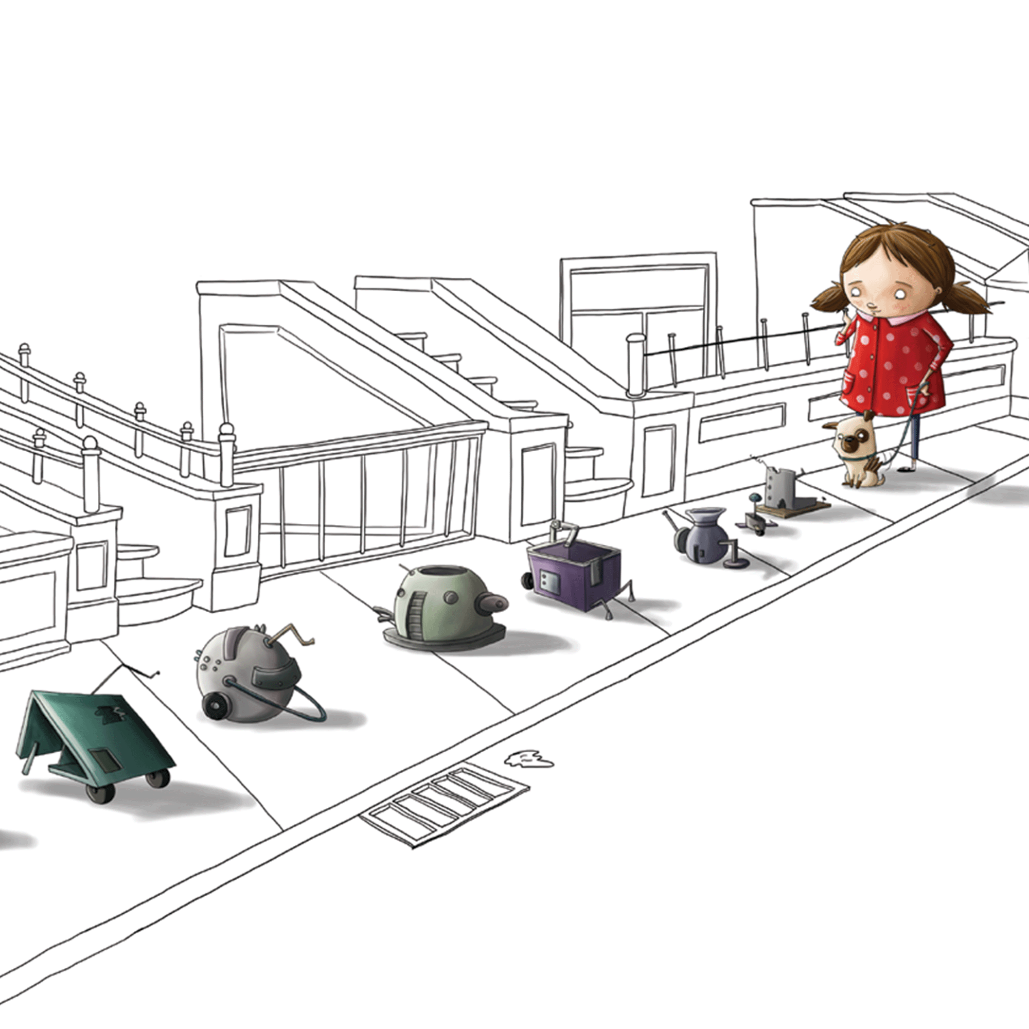 ציור בשילוב של צבעים ושחור-לבן – אפשר להזמין את הילדים לצייר בסגנון המיוחד של הספר ולבחור אילו חלקים לצבוע ואילו חלקים להשאיר רק בקווי מִתְאָר.